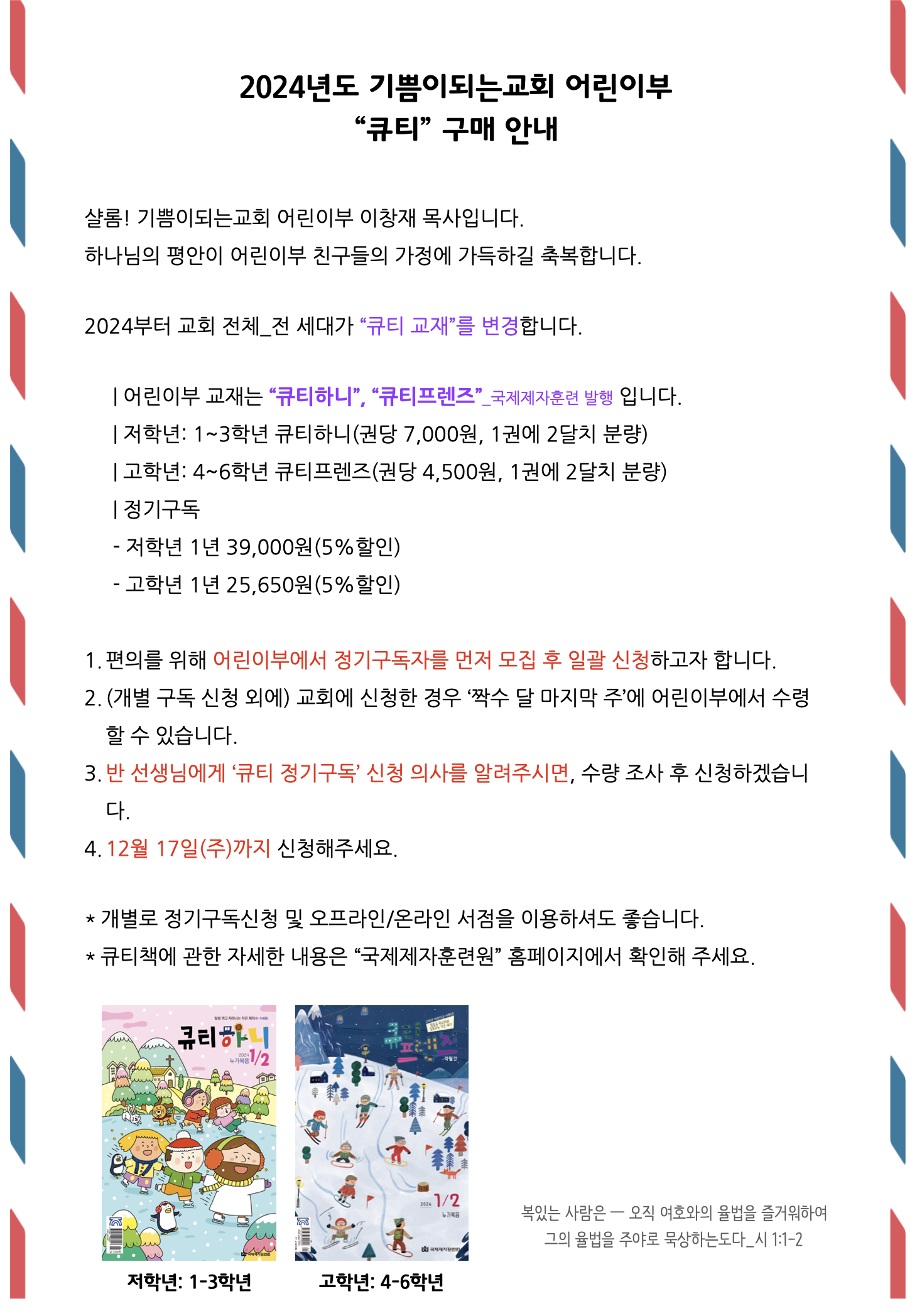 2024년 어린이부 큐티책 변경 안내